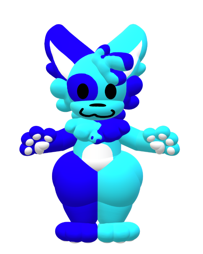 Comfy is an another original character made by Lancey. They are one of the characters from the My silly game series. They have cyan fur with some occasional darker blue spots on their body. Comfy's body build is a bit different than silly's, mainly having a neck fluff, white paws and bigger legs. They are a demiboy and non-binary(?).
